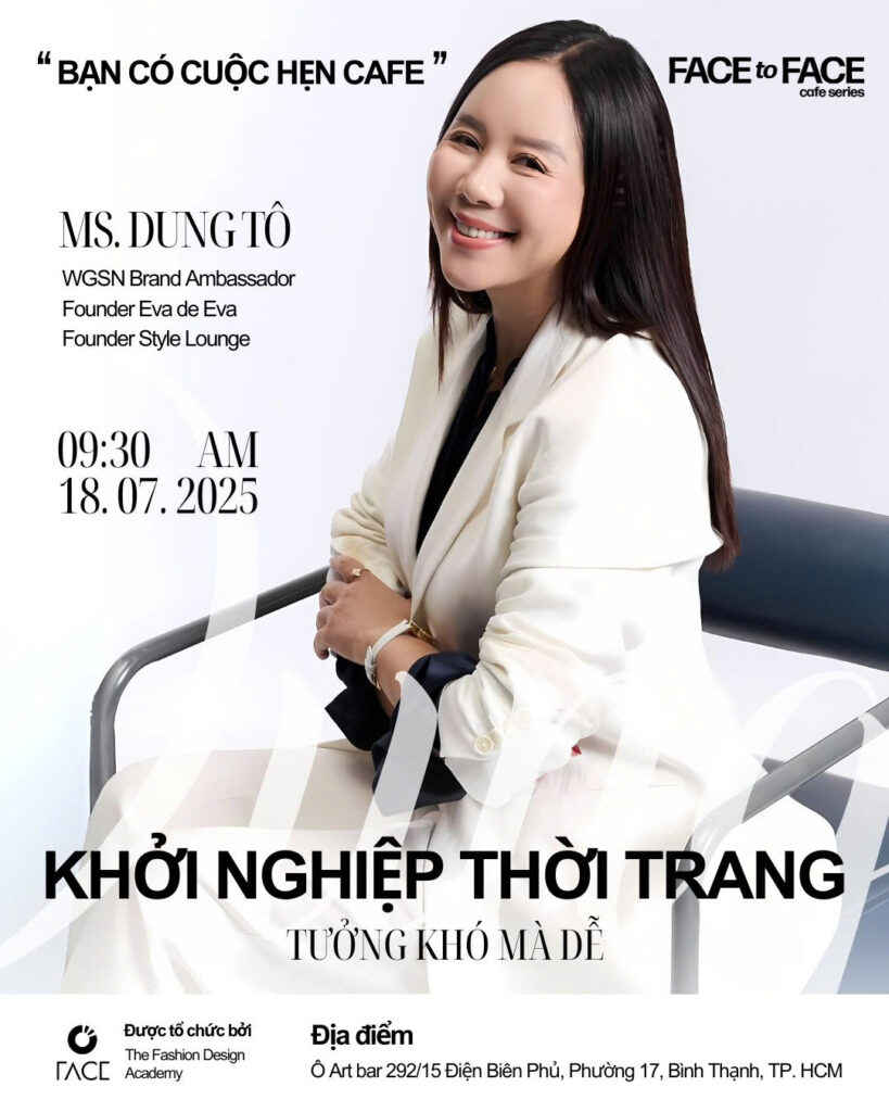 Đây là cơ hội để kết nối với Ms. Dung Tô và các bạn trẻ trong cộng đồng kinh doanh thời trang Sài Gòn. Sự kiện giới hạn người tham dự.